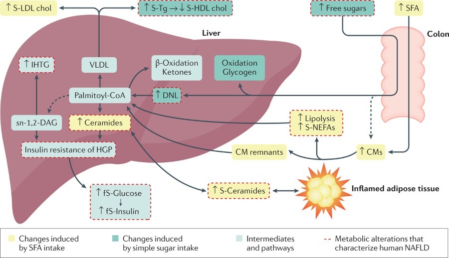 Moreover, the glycation process mentioned earlier plays a role in this context. When sugars like fructose bind to proteins or lipids without enzymatic assistance—forming advanced glycation end products (AGEs)—they can induce oxidative stress and inflammation. These conditions further promote insulin resistance and metabolic dysfunction, creating a vicious cycle that enhances fat accumulation.